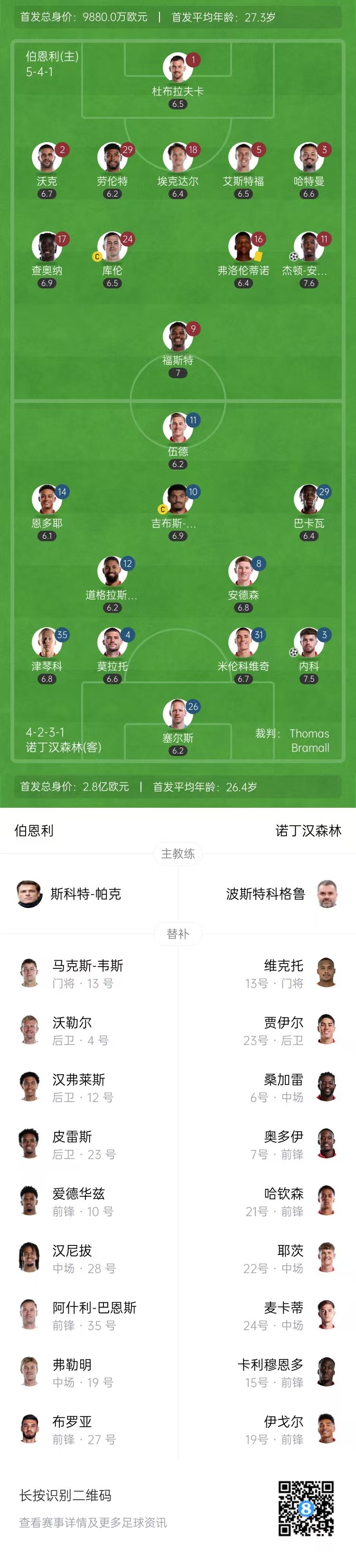 进入第32分钟,诺丁汉森林试图通过地面短传配合撕开伯恩利的防线,伍德在禁区中路接球后低射,但威力明显不足,最终没能形成威胁,伯恩利的后防线牢牢守住了底线。