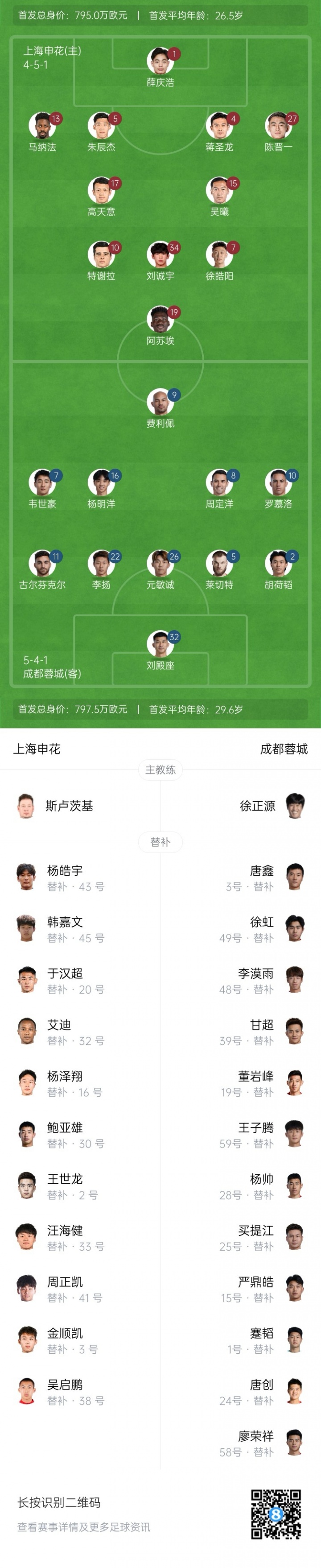 今晚20点,中超第25轮的争夺战如期而至,让我们一起来关注这场上海申花与成都蓉城的对决。真是让人期待不已,史上最“令人惊艳”的赛前阵型终于公布了!申花一方面派出了三名外援,仿佛在说:“我们还想争夺一下冠军。”而那些年轻小将,比如19岁的刘诚宇,似乎也准备好分担点儿压力,虽然我还是不太看好他们的“发光发亮”。