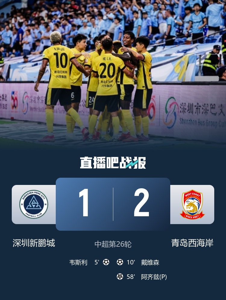 整场比赛中,新鹏城尽管有威胁进攻,但未能把握机会。在比赛最后时刻,韦斯利的任意球攻门再次被李昊神勇扑出,未能改写比分。最终,经过90分钟的奋战,深圳新鹏城在主场遗憾落败,青岛西海岸则收获了一场重要的胜利。