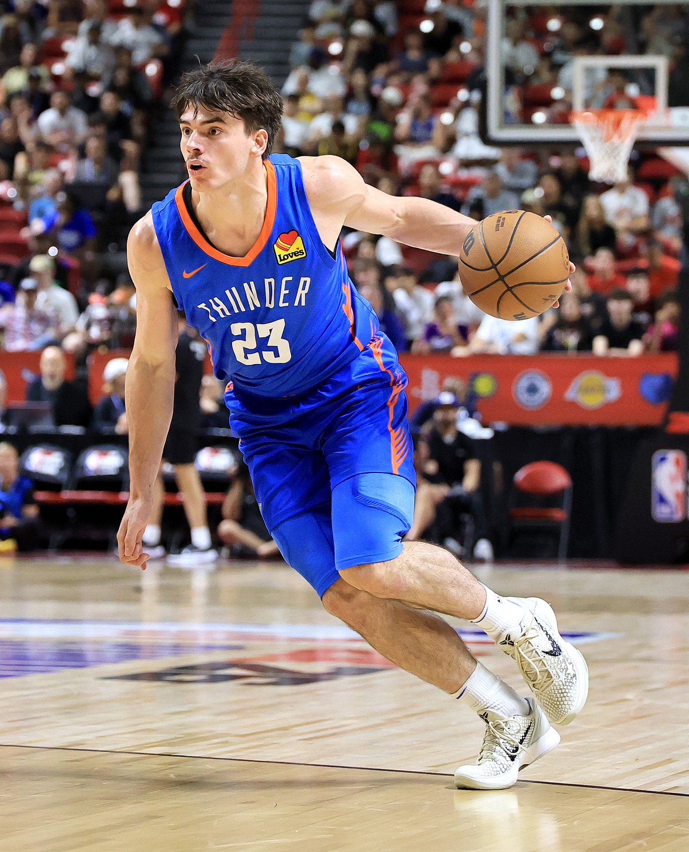 在10月7日的季前赛上,雷霆的表现真是让人失望,竟然以89-106被独行侠战胜。赛后,主教练戴格诺特接受了采访,谈及了44号新秀巴恩海泽,这位年轻的小将似乎成了他心目中的白马王子。