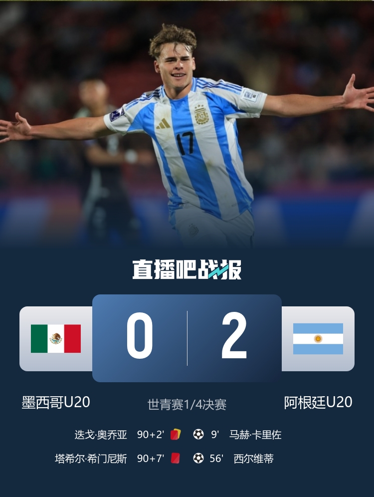 在10月12日晨7点,世青赛四分之一决赛展开了激烈的较量,阿根廷队迎战墨西哥队。比赛初期,阿根廷迅速进入状态,卡里佐在第9分钟的进攻中展现了他的敏锐嗅觉,他在禁区内抓住机会进行补射,成功将球送入网中,为阿根廷斩获首分,阿根廷1-0领先墨西哥。